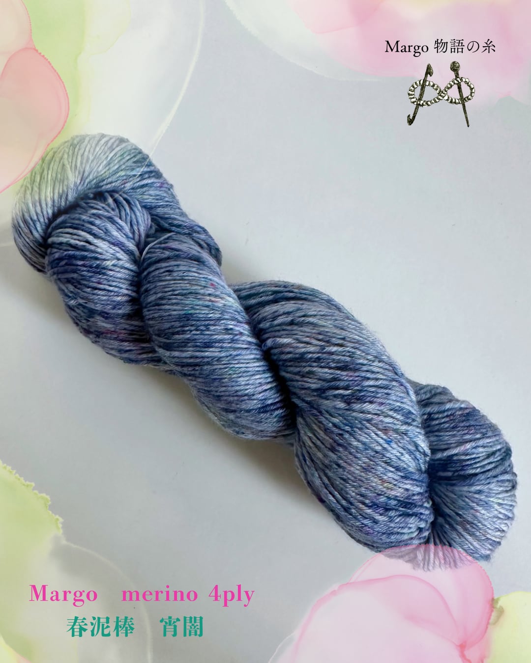 編み見本写真は、昨年のMargo merino 「春泥棒 宵闇 2025」と、
